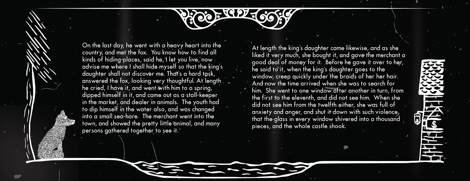 Illustrated story book of the story The Sea-Hare which is a Grimms fairytale. The illustration style was inspired by 1930's era cartoons.